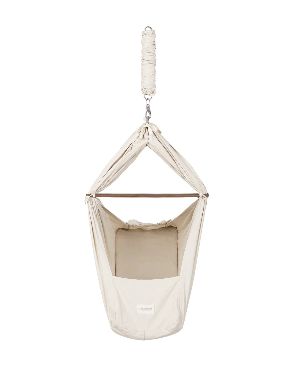 Nog zo’n heerlijke hangmat voor je (toekomstige) kleintje is de Moonboon babyhangmat. Fijn als je even je handen vrij wilt hebben, maar toch het warme geruststellende gevoel van ‘in jouw armen liggen’ na wil bootsen. Door de schommelende bewegingen die de hangmat maakt, helpt het je baby om beter en langer te slapen (ook fijn voor de ouders;-)). En de hangmat is ergonomisch zo ontworpen dat het je baby beschermt tegen fel licht en harde geluiden dempt.
