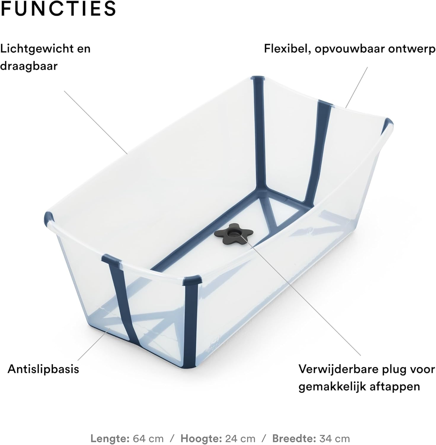 Het Stokke Flexi Bath in transparant blauw is het ideale babybadje voor ouders die functionaliteit, veiligheid en gemak waarderen. Dit opvouwbare badje is perfect voor gebruik thuis én onderweg, en biedt een veilige en comfortabele badervaring voor pasgeborenen en baby’s tot 16 kg.